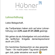 Große Neuigkeiten – 2,9% für unsere Belegschaft